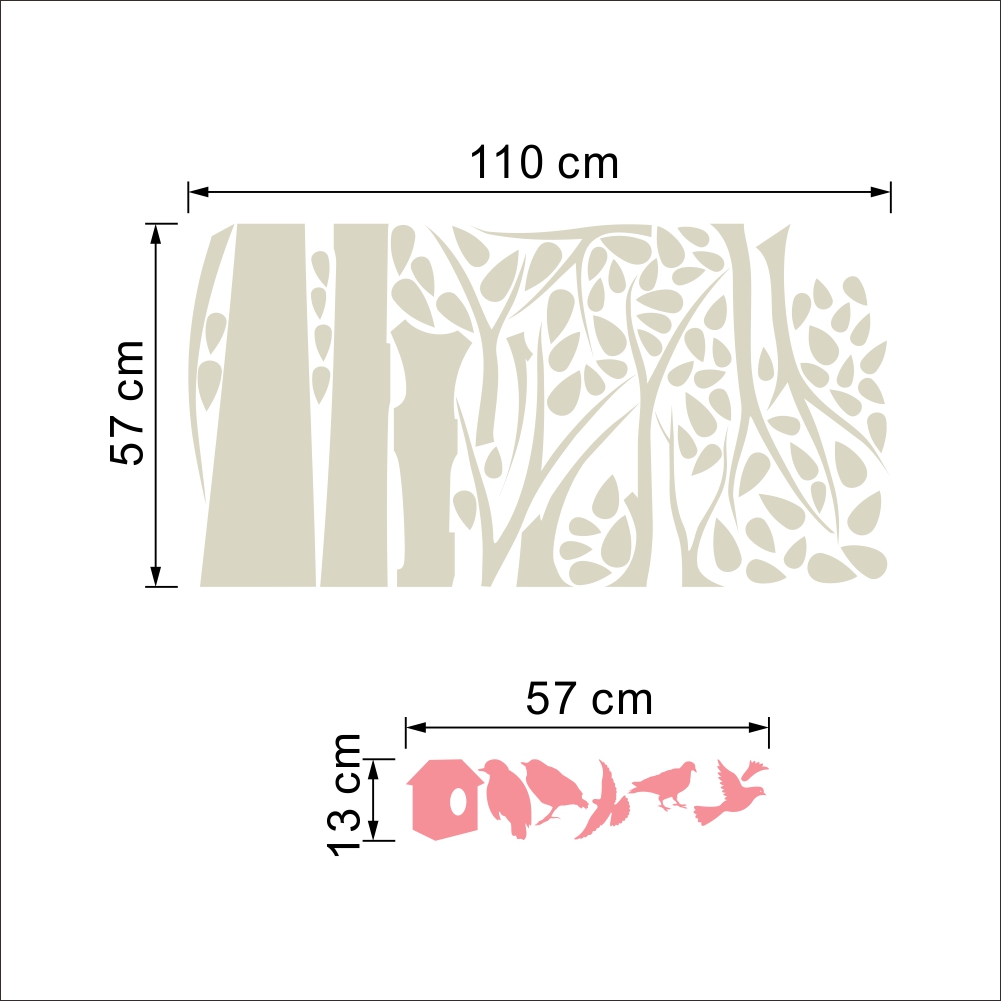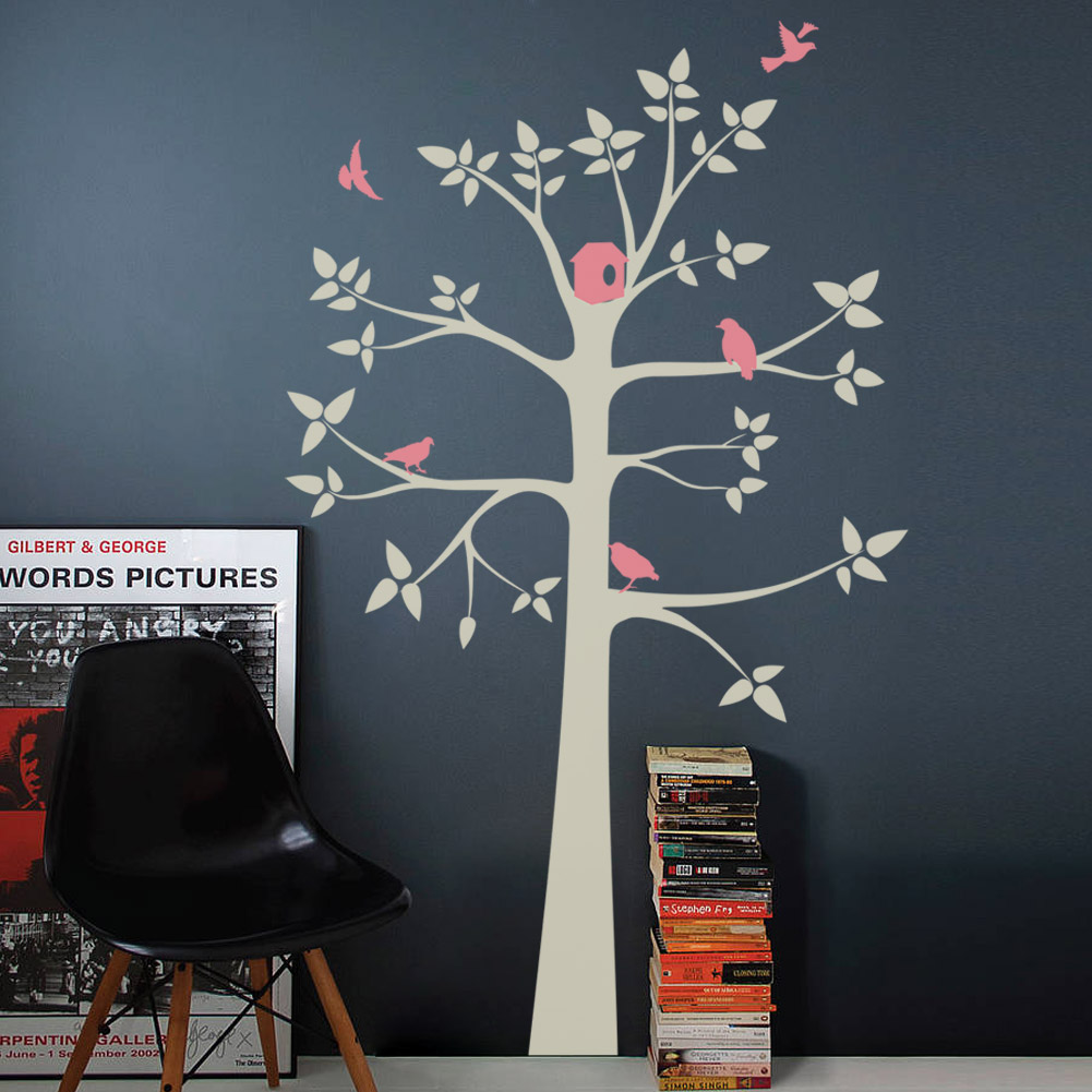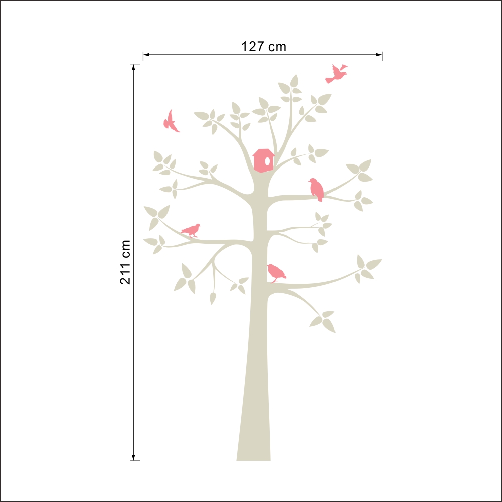 Téma motivu: Samolepka na stěnu šedý strom, stromeček, větve, větvičky, ptáček, budka
